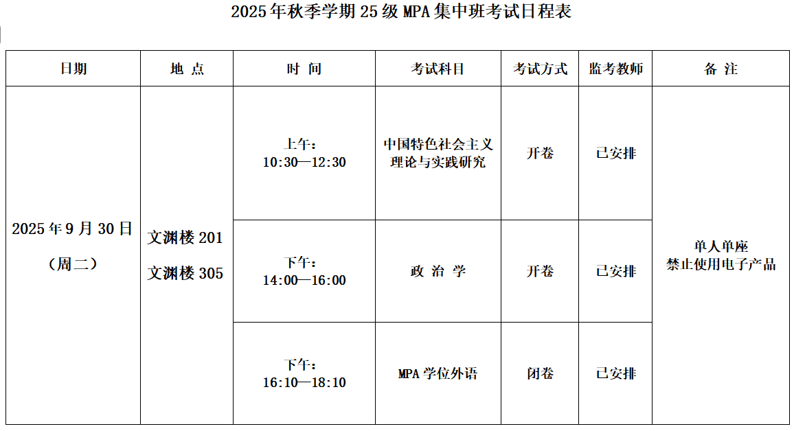 2025秋季学期2024级集中班、25级集中班期末考试通知