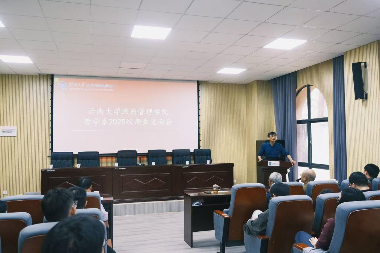 随后,哲学系系主任杨勇以“历史与现实:云大哲学的过去、现在与未来”为主题,带新生回望学科百年历程。他自豪地说:“云大哲学虽规模不大,却‘小而绵长’。”从谢无量先生受聘算起,学科历史超百年;以1953-1956年马克思主义哲学招生为起点,明年将迎来本科招生70周年;1977年恢复高考后的本科哲学招生,2027年也将满50周年,“先辈奠定的学术根基至今未褪色”。