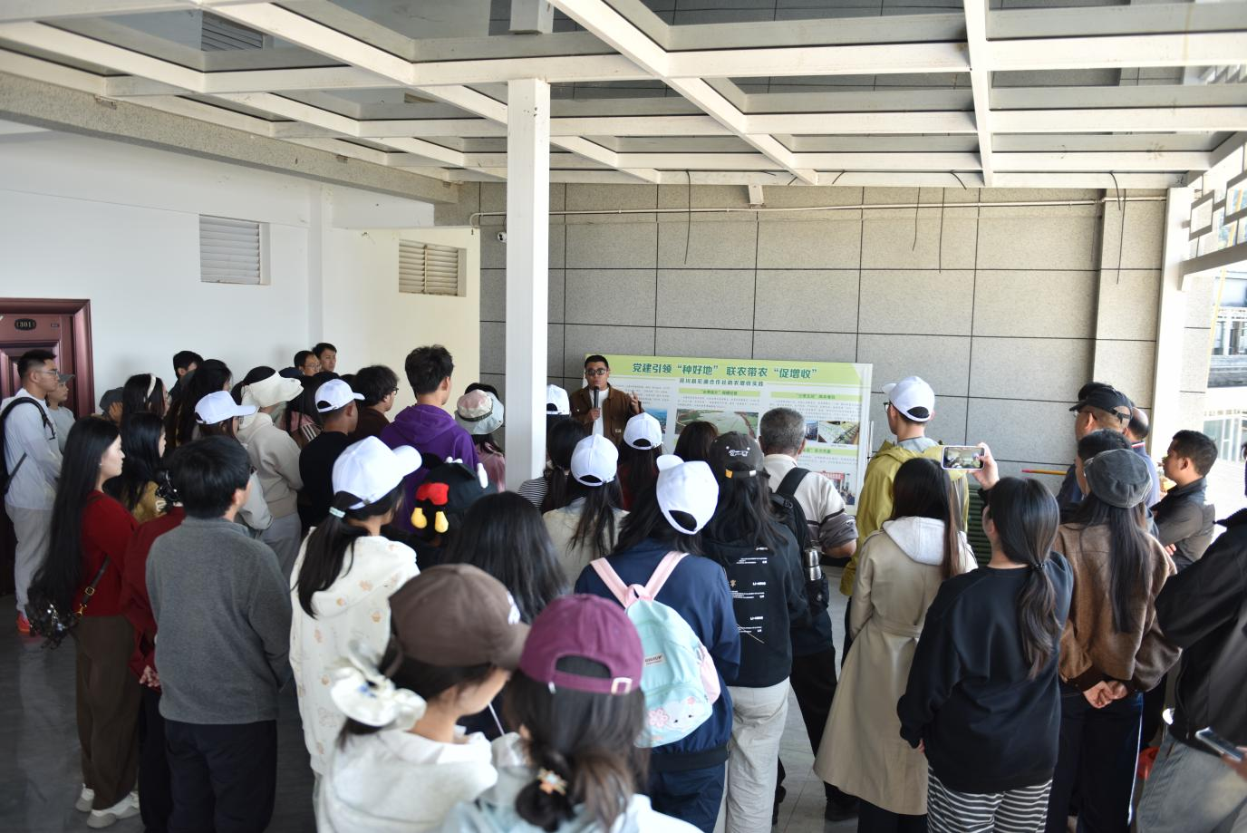 随后,实践队伍抵达宾川县金牛镇罗官村委会菜甸村宏源合作社。作为全国农民合作社排名第八位、云南省第一位的标杆合作社,宏源合作社探索出了一套创新路径。实践队伍重点了解宏源合作社在发展葡萄产业过程中探索出的“党建引领种好地,联农带农促增收”的情况,其如何通过“连埂并片”规模经营、“土地托管”专业种植、“三带五统”降本增效及“收益全返”互利共赢等一系列机制有效实现合作社、社员与村集体的三方共赢。合作社扎根乡土、服务农民的责任担当,以及产业发展与民生改善深度融合的实践成果,为学院将思政教育与乡村产业振兴实践相结合提供鲜活素材。